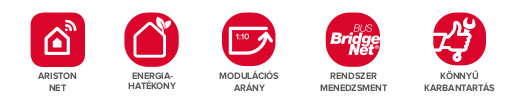 Távirányítás az Ariston Net alkalmazás útján, a beépített Wi-Fi átjárónak köszönhetően. Használatra kész BusBridgeNet® technológia, amely kommunikálhat más Ariston termékekkel, hogy az energiafogyasztás optimalizálása érdekében a termékeket (és energiaforrásokat) és működésüket optimalizálja és összehangolja.