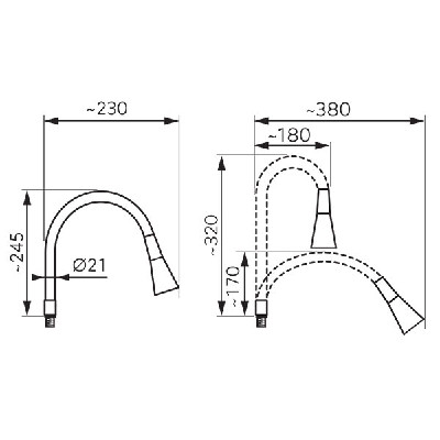 Ferro Elastico II Flexibilis Kifolyócső mosogató csaptelepekhez szürke adatlap és méretek