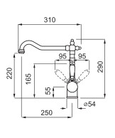 Elleci Rio Álló Mosogató csaptelep rusztikus elfordítható kifolyócsővel G51 avena MGKRIO51 adatlap és méretek