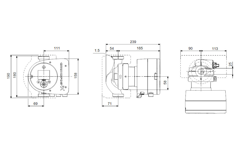 | Grundfos MAGNA3 25-100 180 Fűtési keringető szivattyú | ||
