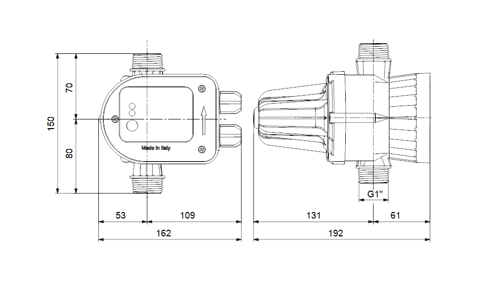 - Automatikus start/stop vezérlés, bekapcsolja a szivattyút, ha a nyomás csökken