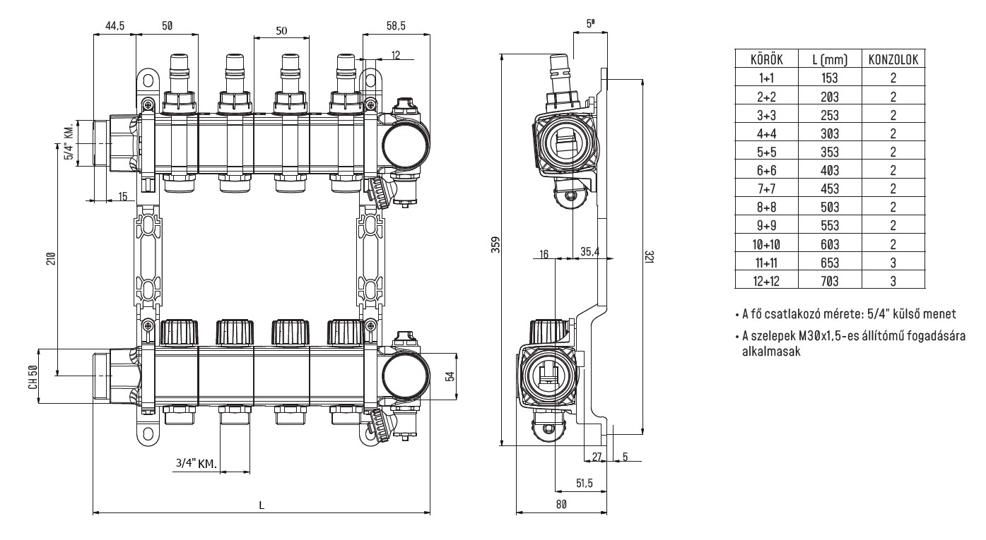 • A szelepek M30x1,5-es állítómű fogadására alkalmasak