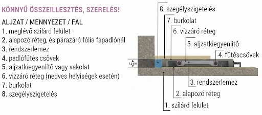 *padlófűtésre alkalmas kivitelben, és hőtechnikai méretezéssel alkalmazható