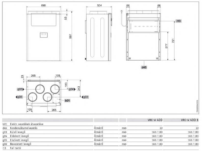 | Levegőcsatlakozó átmérője | mm | 160 |